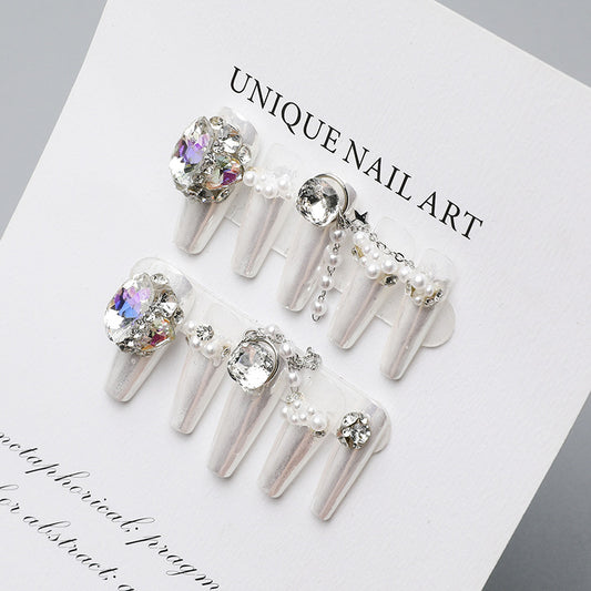 Ballet Armor Silver Snake Powder French Handmade Nails