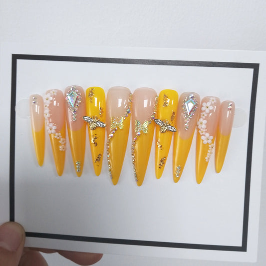 Goose yellow water droplets butterfly flowers Handmade Nails