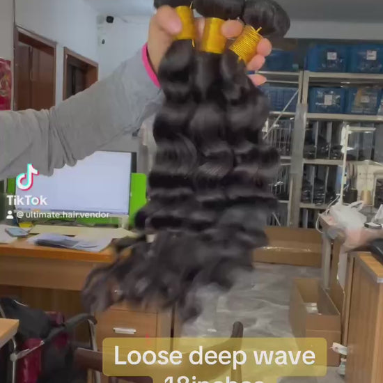 Get the perfect full look with our 3-bundle Peruvian virgin human hair deal. Each bundle is thick, silky, and cuticle-aligned to ensure long-lasting beauty and natural shine.