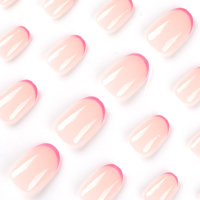 The Pink Girl Nail Set,This trendy style features a semi-transparent base with pink french tips you'll love. With the addition of our brand new short, oval shape, you'll love this elevated take on an everyday mani.