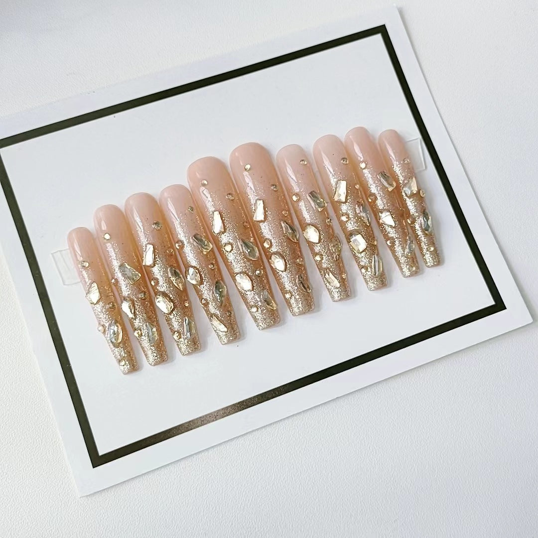 Rose gold diamond Handmade Nails